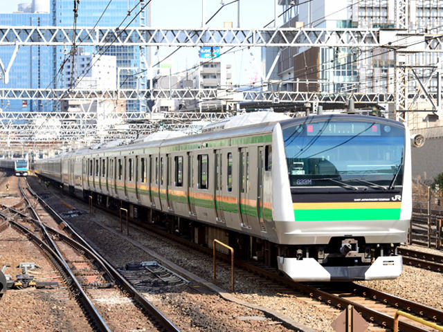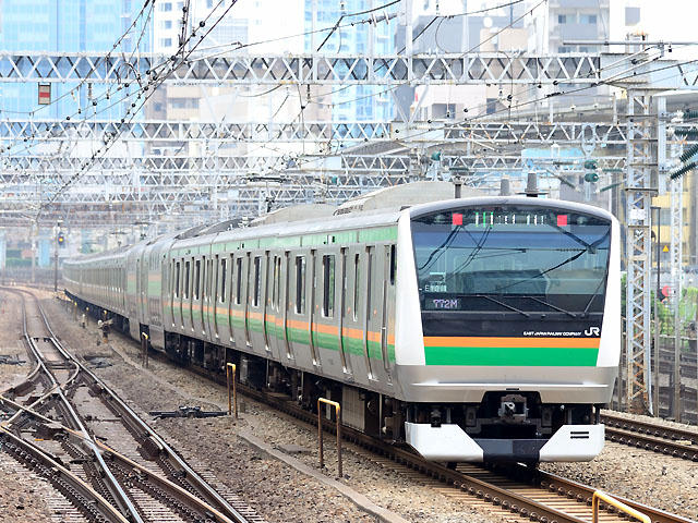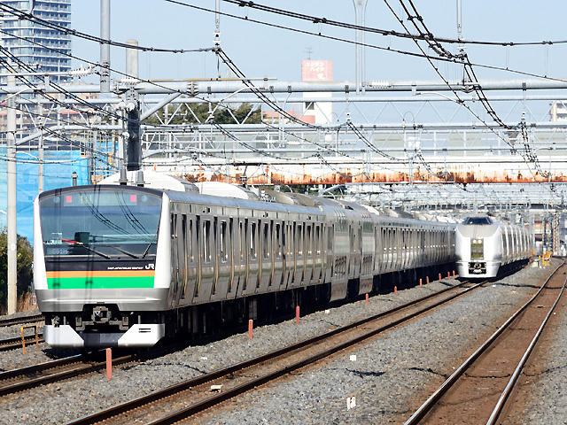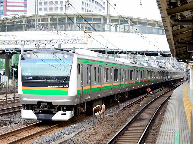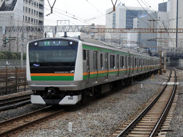| ★ E03編成。基本編成。NT1編成として211系置き換えで登場したタイプ。E01〜E02と組成が違う。 (田町) ★ 田町にて。こちら ★ 新大久保にて。こちら |