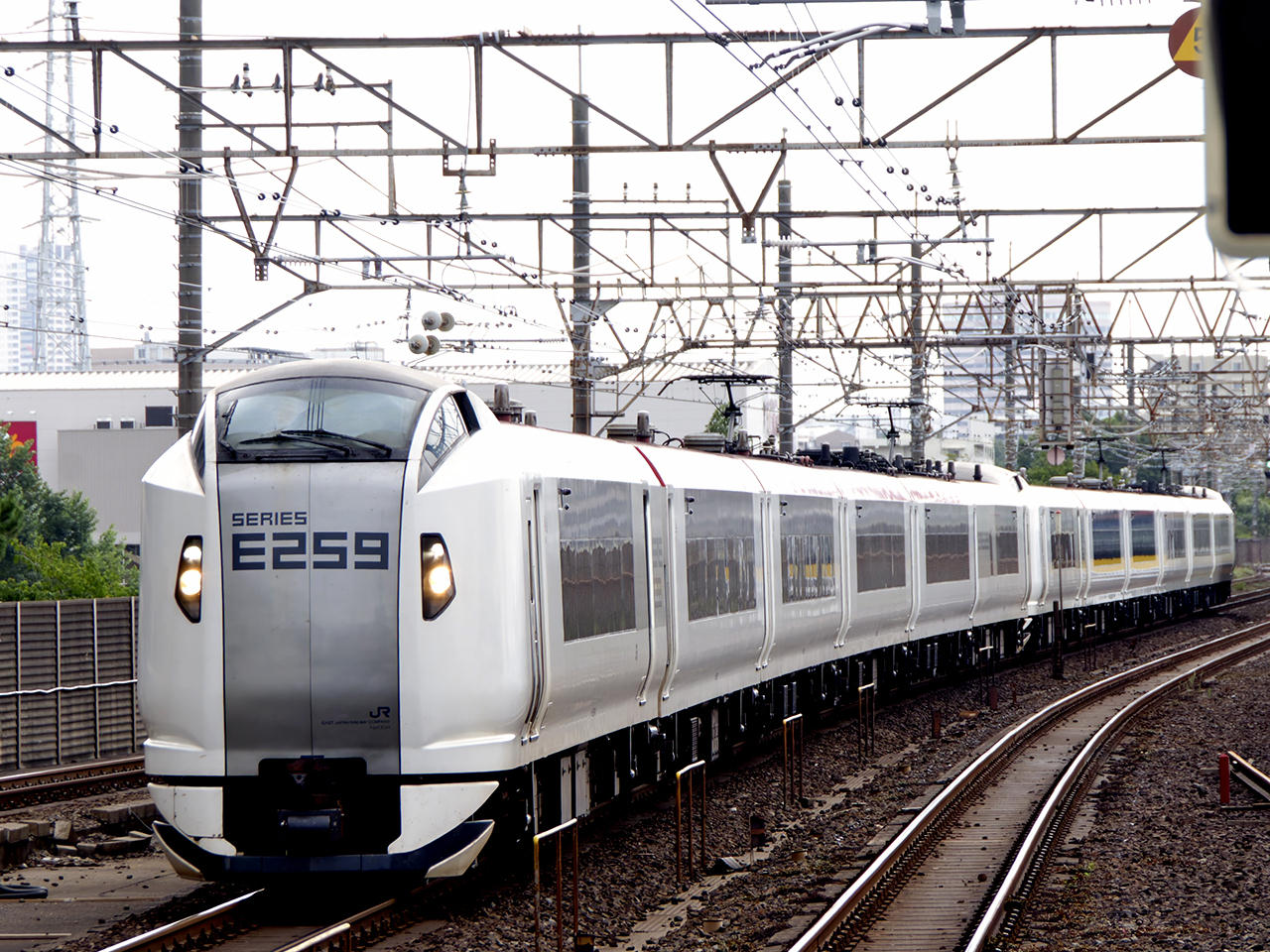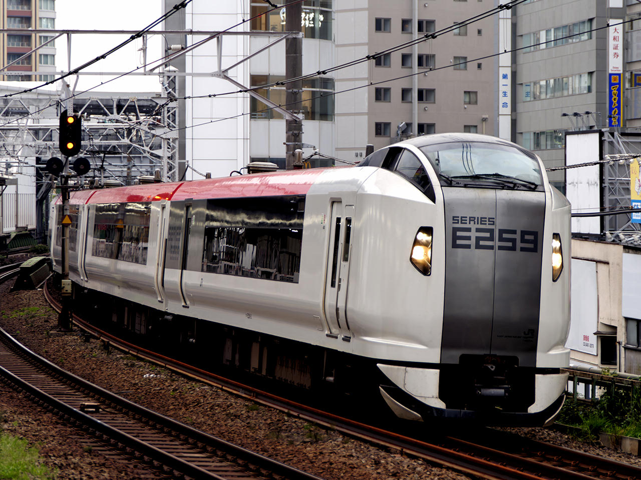 E259系の意外な運用として、たまに運転される東京〜伊豆急下田の「マリンエクスプレス踊り子号」がある。 (田町) |