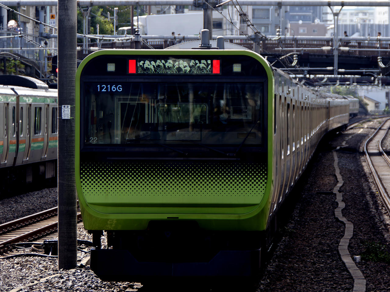 | ★ 05編成。2017/6/9に大崎へ配給され、6/16に運用開始された。この編成は11両全部が新製車である。2019/11/16に高輪ゲートウェイ駅の工事のため上野折り返しとなり、内回り線を引き上げ線から逆走入線する05編成。 (上野) ★ 神田にて。こちら ★ 田町にて。こちら ★ 上野止まりのため回送表示で入線。こちら |