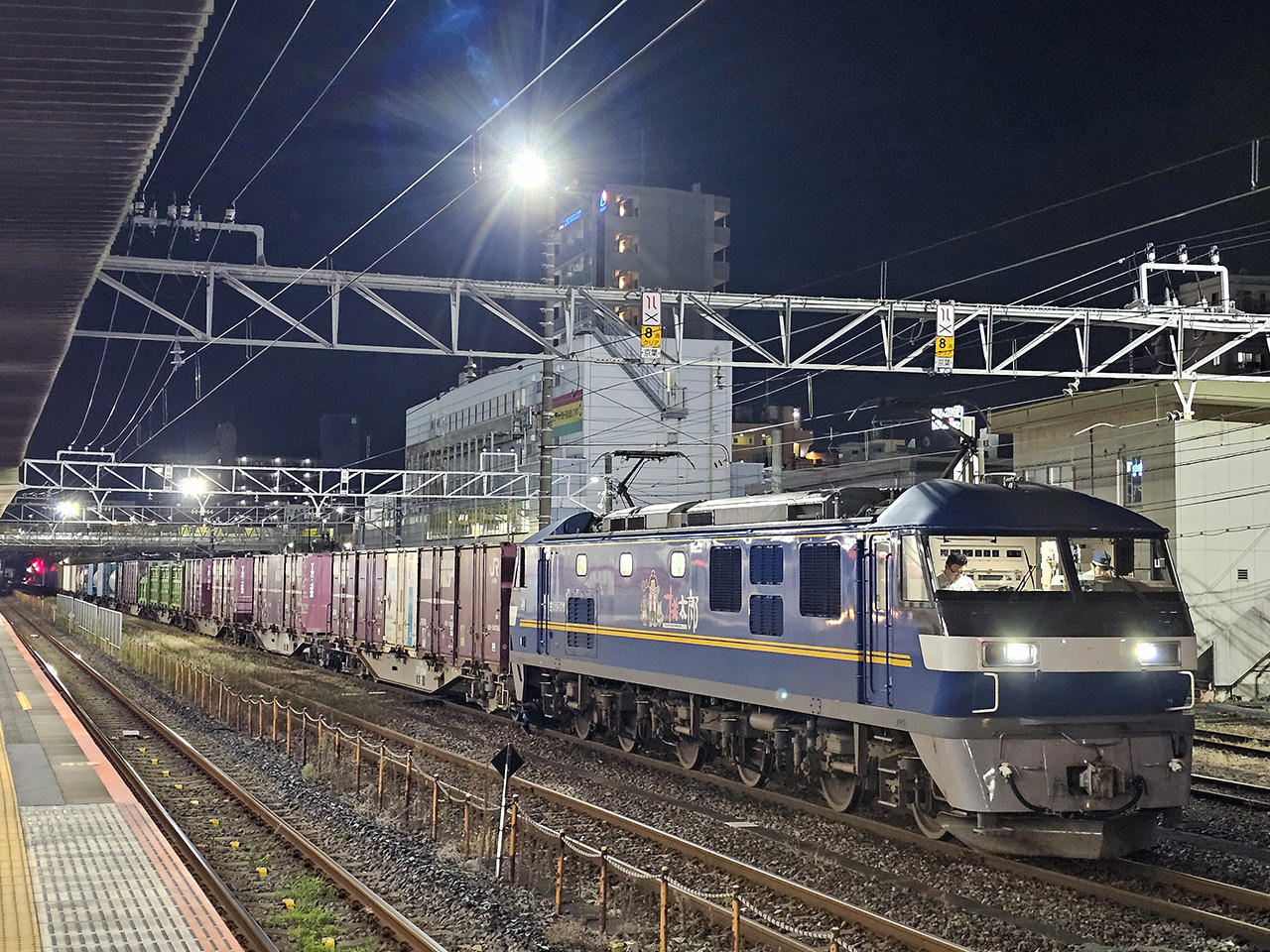 2012/9/3に出場。出場後吹田、大井で訓練を経て10/1に広島へ。当初広島車両所に所属していたが、2013/9に吹田へ転属。2077レで広島へ向かい、瀬野八運用をこなし、2076レで吹田へ戻るという運用が組まれている。100番台より車体長が長いせいか?残念ながら吹田以東へ営業列車で入線はしない。 画像は2076レが遅れて日中走行。 (東淀川) ★ 8795レ。西浦和にて。こちら |