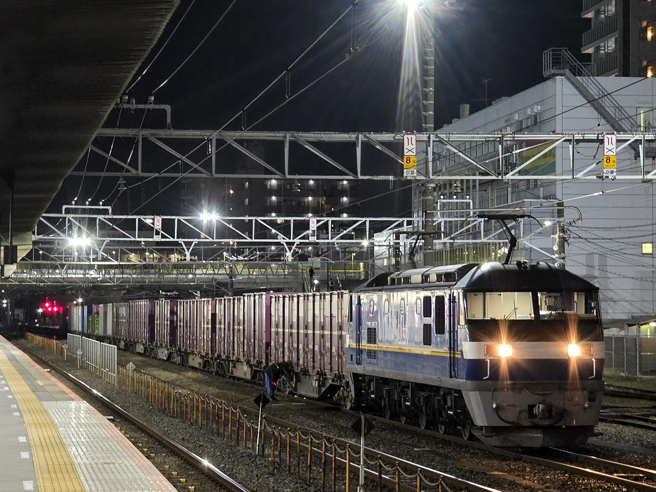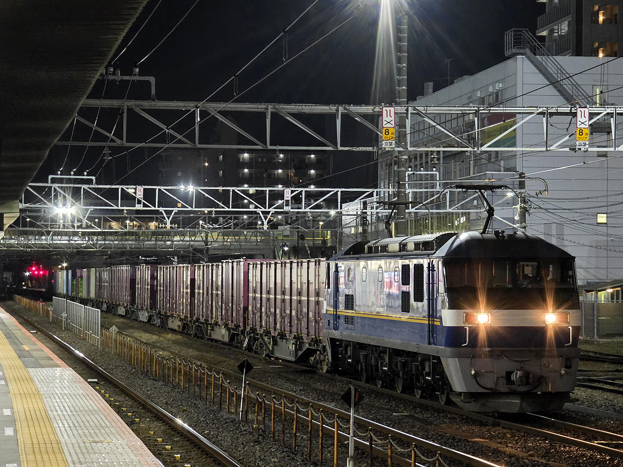 | 2012/9/3に出場。出場後吹田、大井で訓練を経て10/1に広島へ。当初広島車両所に所属していたが、2013/9に吹田へ転属。2077レで広島へ向かい、瀬野八運用をこなし、2076レで吹田へ戻るという運用が組まれている。100番台より車体長が長いせいか?残念ながら吹田以東へ営業列車で入線はしない。 画像は2076レが遅れて日中走行。 (東淀川) ★ 8795レ。西浦和にて。こちら |
