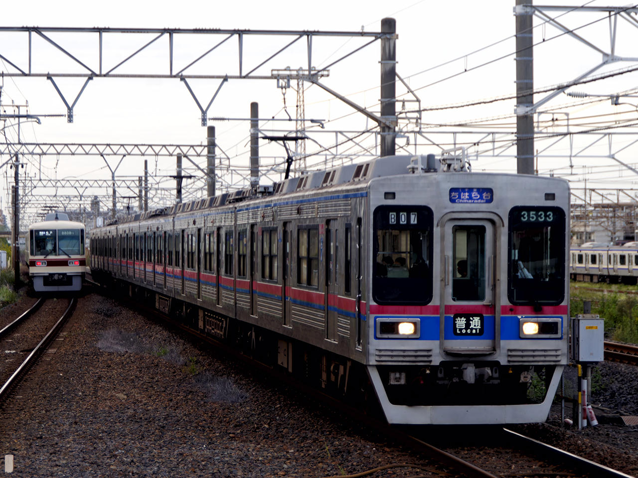 | ★ 3536F3533。組成替えされて、3533-3534+3555-356+3535-3536となり、デジタル無線が取り付けられた。 (みどり台) ★ 3533。[普通|ちはら台]@幕張本郷。こちら |
