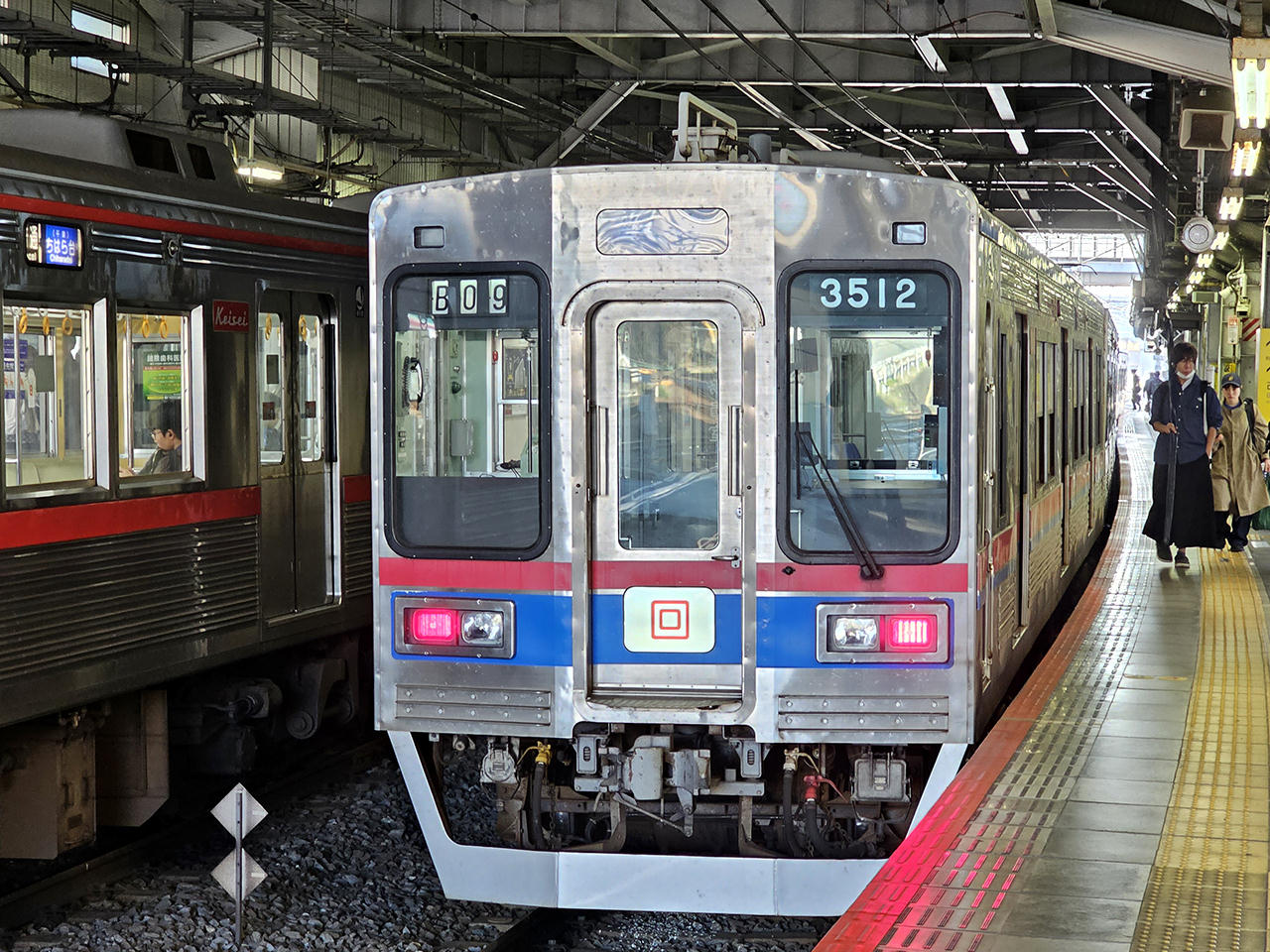 ★ 3512F3512。今までも上野方の先頭車は撮影できておらず、新種別幕になってもずっと6連の編成の中に入っていて先頭車として撮影できなかったが、2018/11/1より8連の先頭車として3日間だけ運用され、ようやく撮影できた。 (京成大久保) |