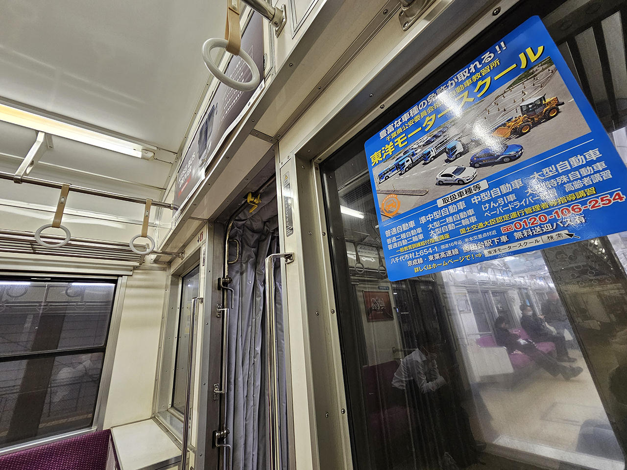 ★ 3516F3516。2022/11のダイヤ改正で金町線、成田〜芝山千代田、千葉中央〜ちはら台(1運用)がワンマン運転となった。貫通部扉の「ワンマン」というプレートがワンマン運転中であることを示す。乗務員は千葉中央で交代しており、ここでは合理化となっていない。 (大森台) |