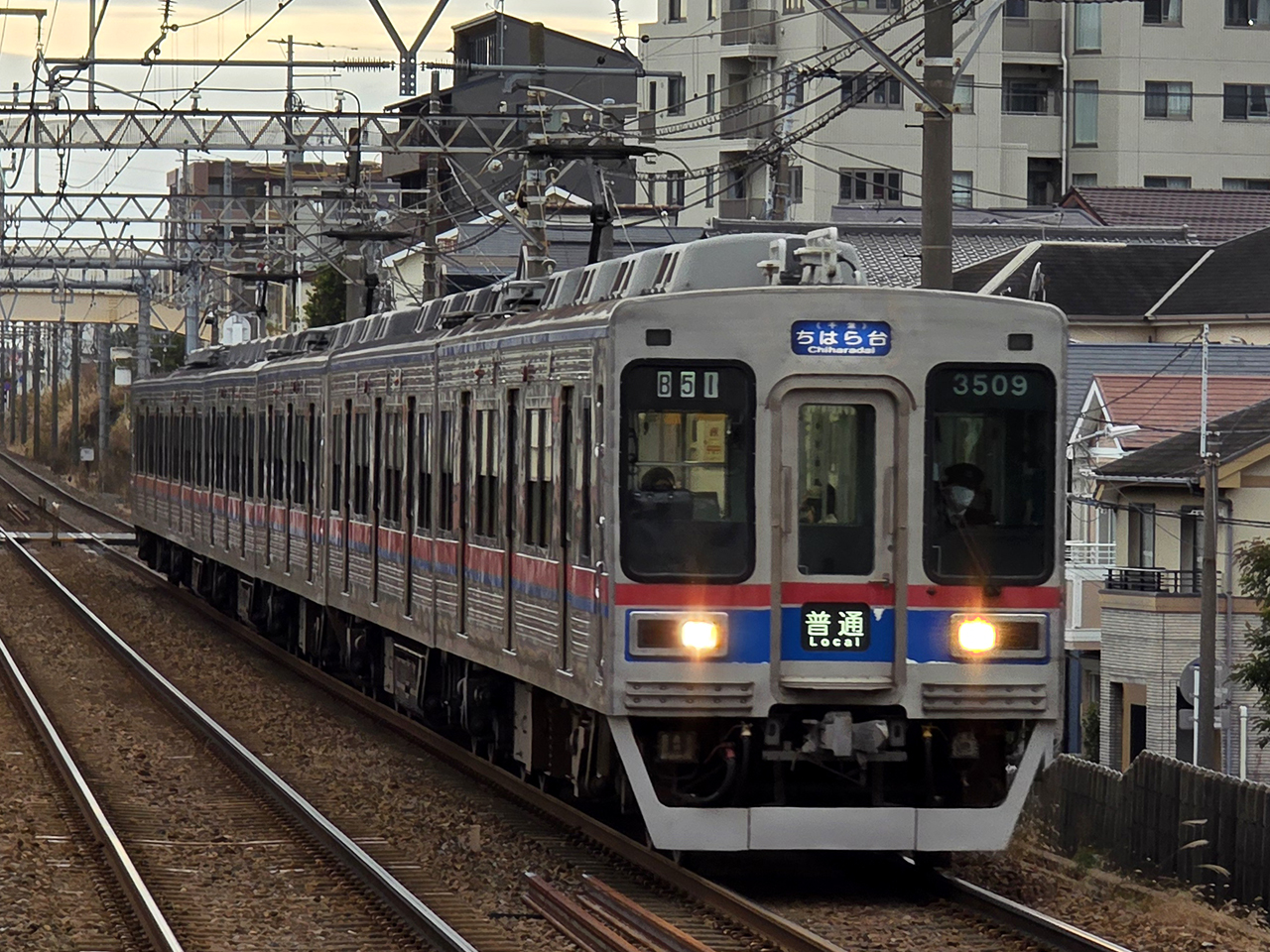 3512F3509。2021/8に3512-3511+3526-3525+3510-3509に組成変更され、2021/11にデジタル無線が取り付けられた。中間の3525にはデジタル無線は取り付けられていない。 2025/8/6に運転された10S72動揺検測列車。 (みどり台) ★ 3512。[普通|津田沼]@みどり台。こちら ★ 3512。「回」。京成津田沼にて。こちら ★ 3512。B51代走。[普通|ちはら台]@西登戸。こちら |