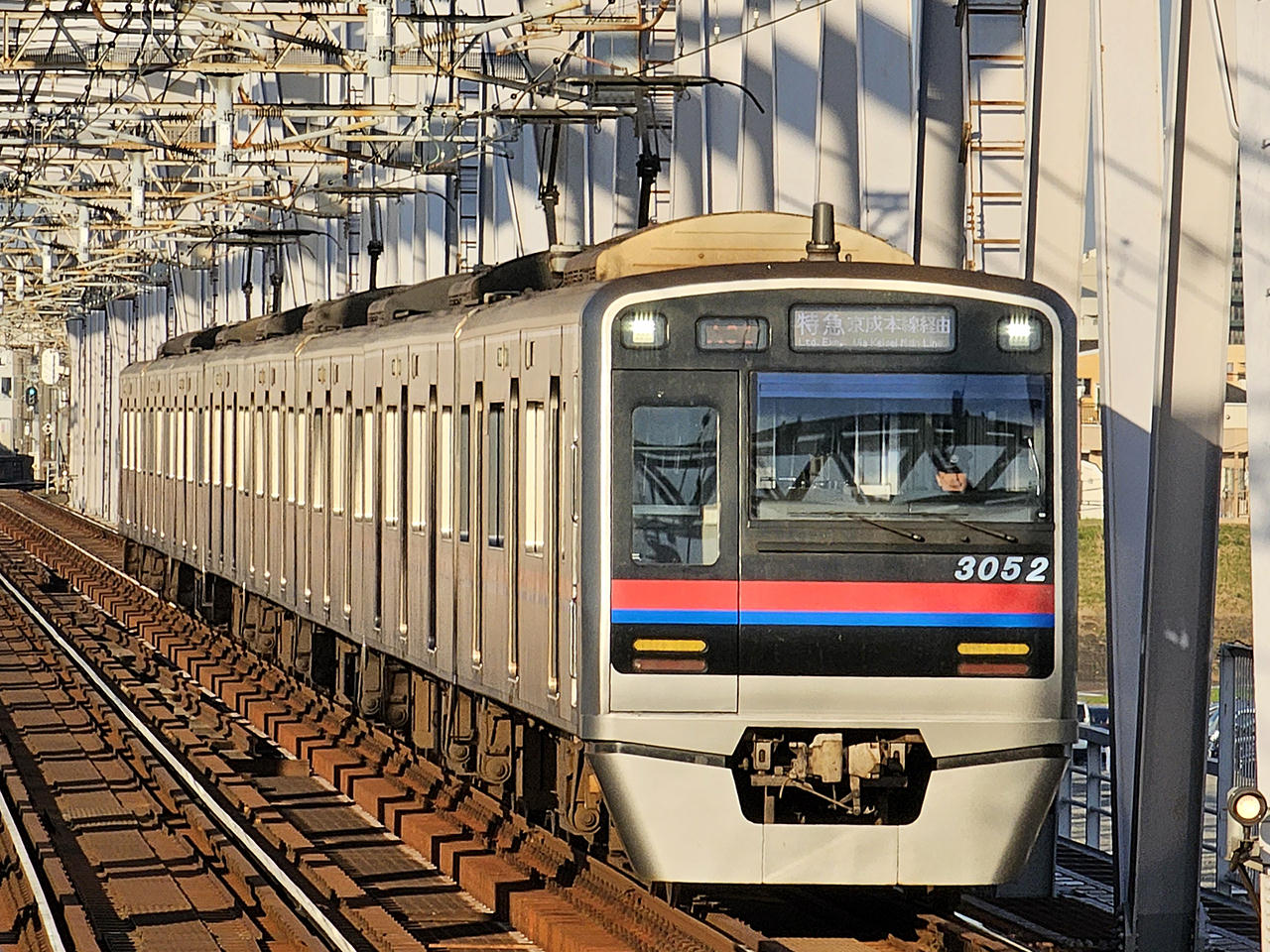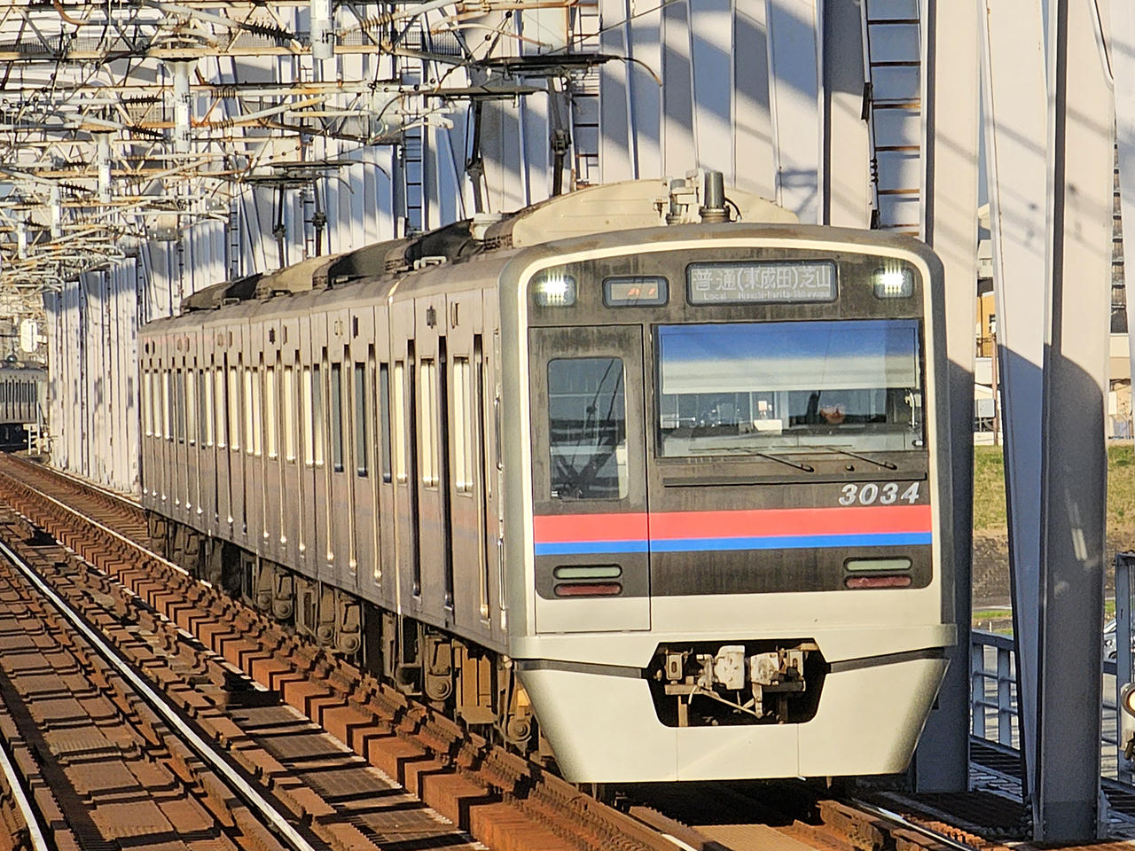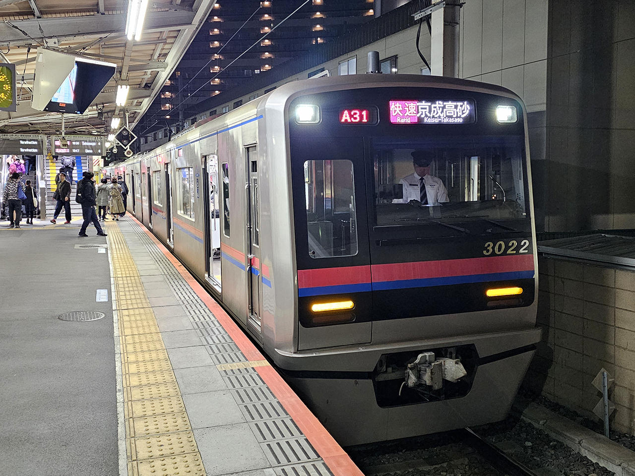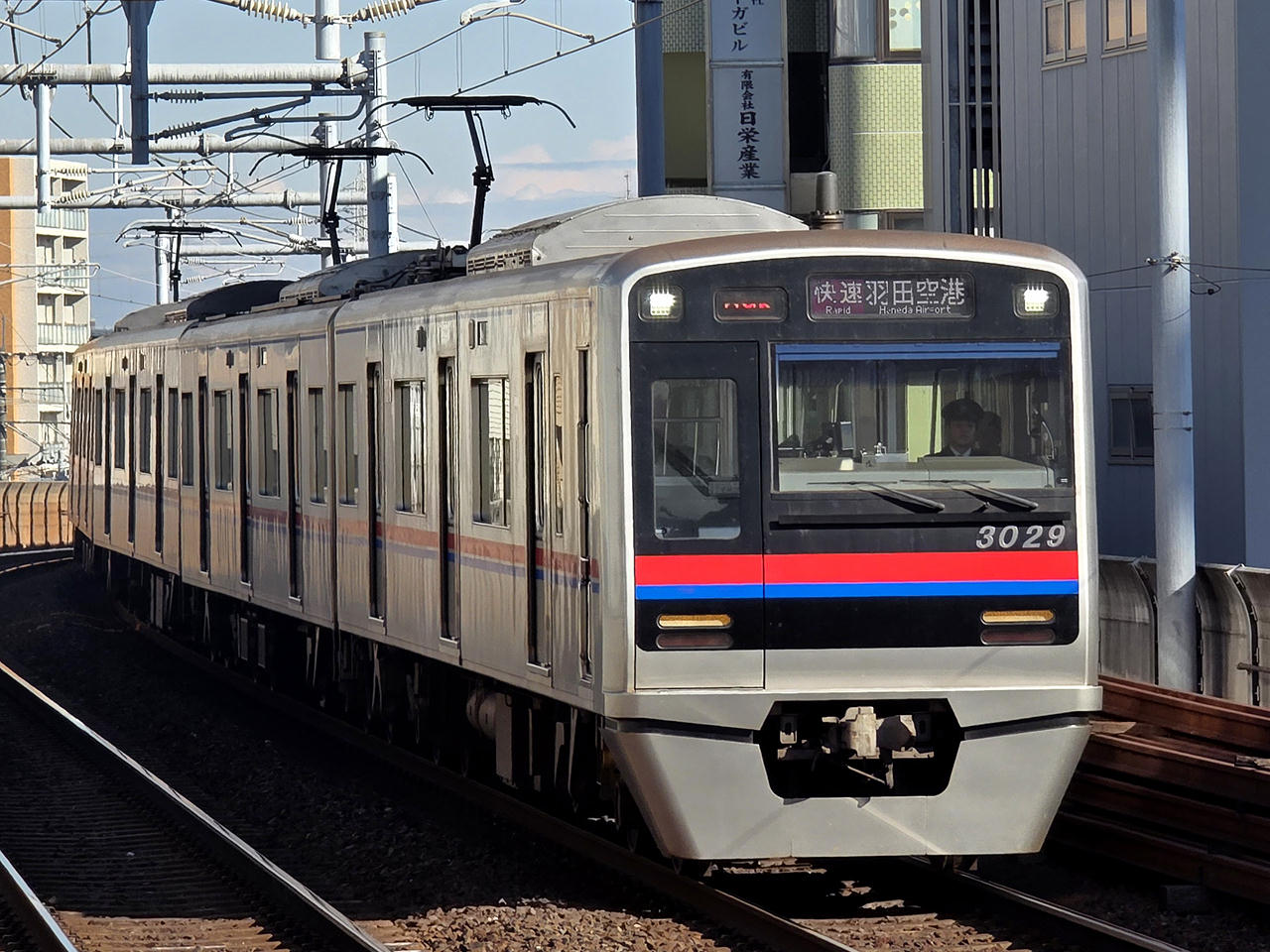 3001F3001-8。8連で、羽田空港・西馬込・上野〜成田空港・芝山千代田・印旛日本医大と広く運用される。写真は特急上野行。急行灯点灯。 (八千代台) ★ [特急|上野]。八千代台駅で夜3748と並ぶ。こちら ★ [特急|上野]@勝田台。その1 その2 ★ [快速|西馬込]。八千代台〜実籾にて。こちら |