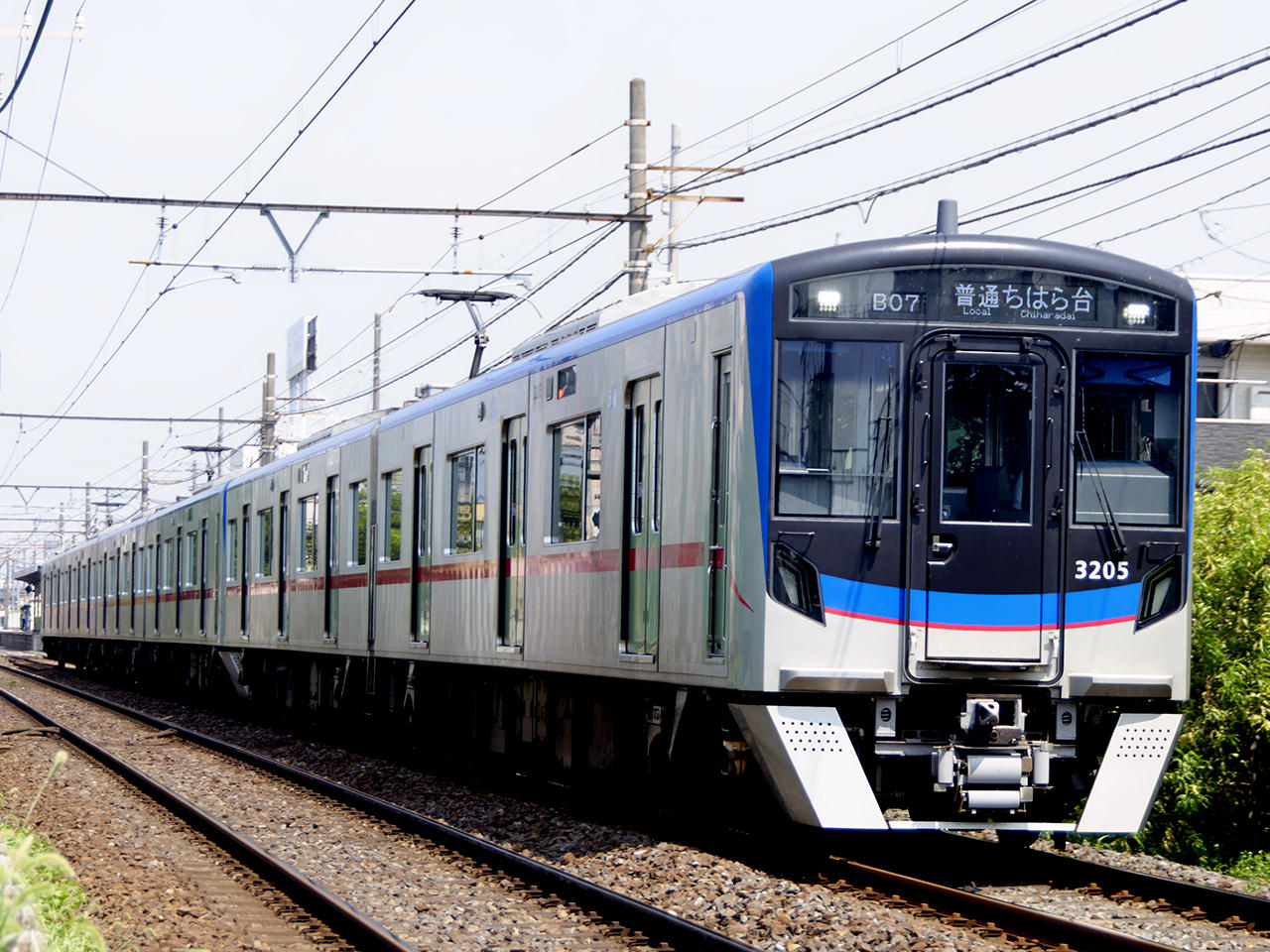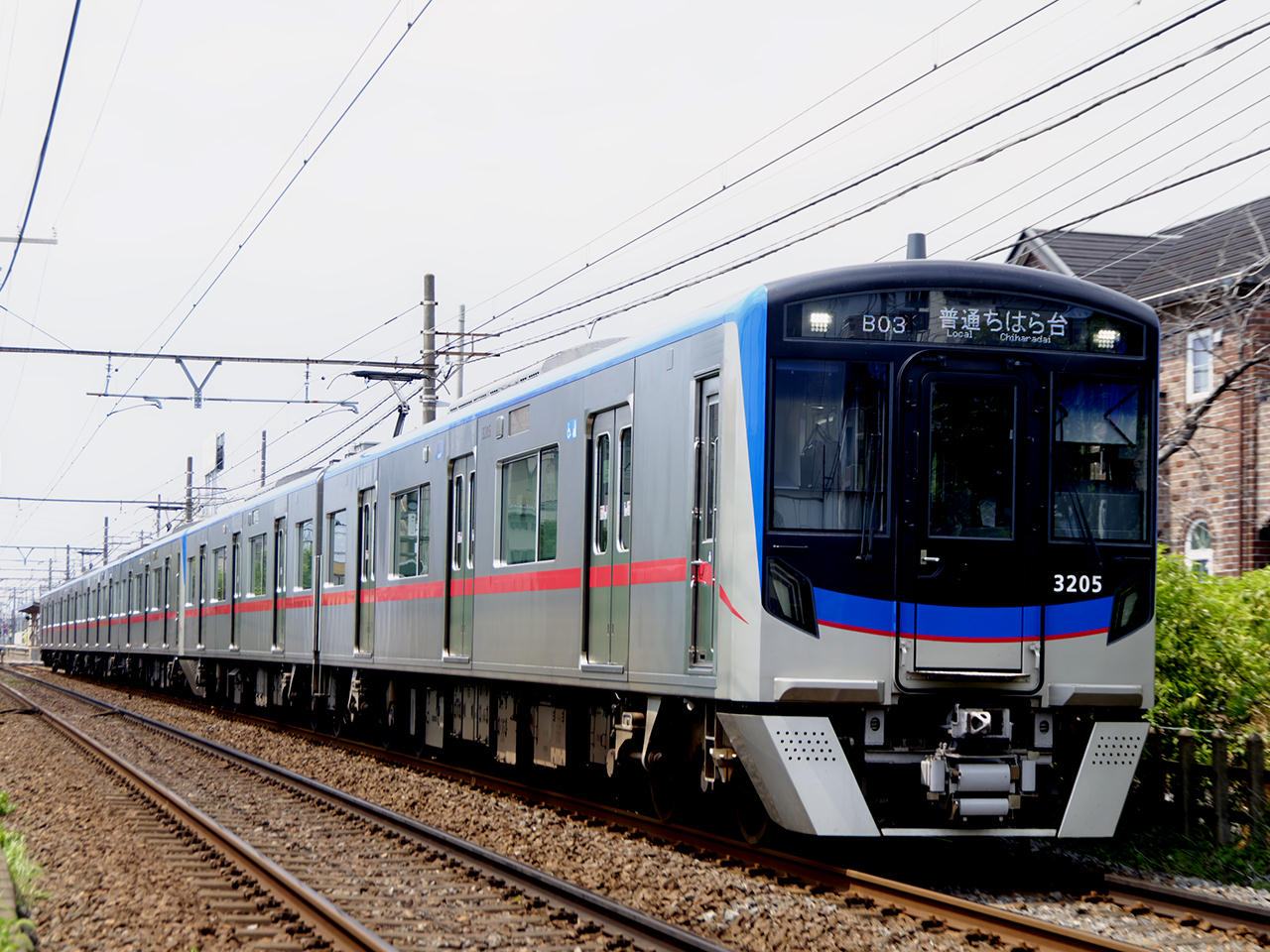 3200形は2024年7月に5年ぶりの新形式車として登場。3500形同様4両で1ユニットを組み、ユニットは2両ずつ分割可能。そして今回は先頭車と、2両目の中間車にも自動連結器を搭載して併結解放を簡単にしたことが大きな特徴として上げられる。4+4で例えば津田沼で成田方向と千葉方向に分割して運用することは車両側は可能だが、信号設備が対応していないため現段階ではないとのこと。 2024年度は3205-3206+3201-3202+3203-3204が登場し、成田側運転席の3201が編成中間に入っている。何度かの試運転と2025/2/10, 13, 15に臨時で運転してから、2025/2/22の09運用でデビューした。 最高速度は120km/hで、まだ高砂〜印西牧の原を走行実績がないが、アクセス特急運用も可能だと思われる。当面は6両なので、原則01〜49、B01〜B27運用に充当されると思われるが、そのうち4連で運用されるかもしれない。 前面が左右対称の顔になったが、機器の増加で運転士直後の窓がなくなり、また客室側は左右非対称になっているが、連結時に通り抜けが可能な構造になっている。 運転席上部には車内モニターが設置されており、非常通報で呼んだ号車内が見られるようになっていて、緊急対応の迅速化が期待出来る。 また3100形の定速度制御は継続され、東洋製SiC-VVVFなどが搭載されている。 車内にはプラズマクラスターが設置され、車内環境の向上も図られている。 ![]() |