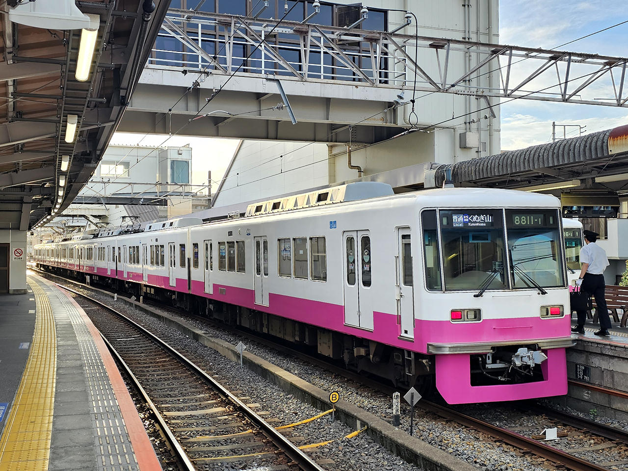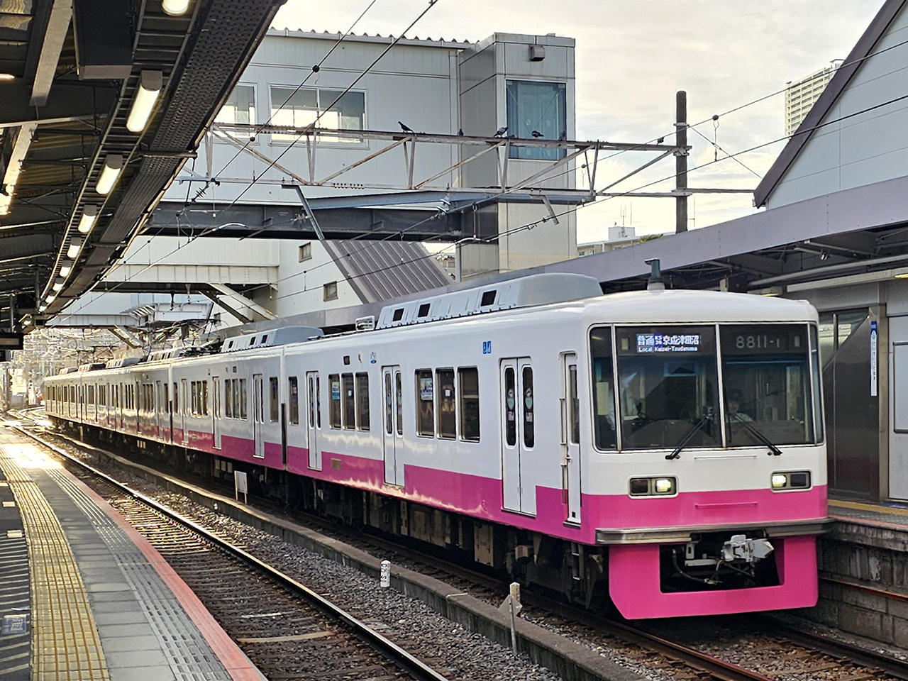 ●8900形 8連3編成が製造されました。都営浅草線乗り入れ仕様で、N800系同様ワンハンドルマスコンですが、力行4段なところが京成とは異なります。(東京都5300形と同一) 設計最高速度は120km/hで、余裕のある性能です。 8800形の6連化が終わり、その波は8900形にも及びました。まず8918Fが2両を抜かれて6連化され、新塗装になってVVVFも交換。運転台のディジタル速度計がアナログ式に交換されて出場。続いて8928F、8938Fも2両を抜かれて6連化され、こちらはその状態で運用に就いています。なおこの6連化で新京成から8連は消滅し、駅の8両停止位置札も撤去され、全車6連化が完了し、朝1往復の増便がなされました。 8918Fは「千葉中央」の表示があるため期待しましたが、千葉線乗り入れ改造はなされておらず(乗車して目視の範囲で。運転台に「乗入未対応」と表記あり。)、今後も乗り入れはないらしい(イベントで社員談)とのことです。LED前照灯、車内LED照明に交換、8506Fのインバータを換装、パッとビジョンの取付、自動放送の取付が行われました。 8928Fについては8514FのVVVF機器を流用しました。 8938Fについては8510FのVVVF機器を流用しました。そしてLED前照灯、車内LED照明に交換が行われました。 新塗装化率は100%となりました。また2020年に入って行き先表示の3色LEDがフルカラーLEDに交換されました。 ・8918F 新塗装、LED前照灯、IGBT-VVVF換装済、車外スピーカー、ドアチャイム、車内LED照明、パッとビジョン、自動放送、2018/10にパンタグラフをPT71に交換。 ・8928F 新塗装 LED前照灯、IGBT-VVVF換装済 ・8938F 新塗装 LED前照灯、車内LED照明、IGBT-VVVF換装済 ●N800形 6連5編成があります。京成3000形に準じています。N818Fが投入されてから10年が経ってやっと4本目のN848Fが投入されました。全車京成千葉線乗り入れに対応しています。2015年はN828が新塗装になりました。N818、N838に新社章が貼られていましたが、これらも新塗装となり、新塗装化率は100%となりました。 第1編成N818Fの京成津田沼での北総9008Fによる搬入の様子も掲載しています。 なお方向幕フルカラーLED化工事や、最近ブレーキ7段化工事が行われており、他の車両は7段なので揃えられることになります。 ・N818F 2005/4新製、京成塗装 LED前照灯、運用&行き先フルカラーLED ・N828F 2011/1新製、新塗装 LED前照灯、運用&行き先フルカラーLED ・N838F 2012/10新製、復刻塗装、LED前照灯、運用&行き先フルカラーLED ・N848F 2015/12/22運転開始、最初から新塗装 LED前照灯、パッとビジョン、車内LED照明、運用&行き先フルカラーLED ・N858F 2018/8/22運転開始。最初から新塗装。LED前照灯、パッとビジョン、車内LED照明、運用&行き先フルカラーLED ●80000形 2019年4月に投入が公表され、10月に登場しました。京成3100形と共通設計で、塗装と内装に差違があります。新京成は形式名の頭に8を使うと決まっているそうで、今回5桁になった模様。2019年12月27日から松戸〜京成津田沼での運転が開始されました。2021年11月に2編成目が運用開始されました。千葉直切換スイッチはあるが、新京成線内折り返し専用として運用されています。 各車両に防犯カメラを3台設置、フリースペースを中間車に設定。17インチLCDは2基に増やし、プラズマクラスターイオン発生装置を搭載しています。騒音をリアルタイムで追従して放送の音量を適正化する放送装置が搭載されています。定速度制御装置が搭載され、カーブでの所要時間短縮も期待できます。運転台には8900形のものを改良したモニターが取り付けられた上に、もう1台モニターを設置できるよう準備工事がなされていたが、ここにC-ATSの情報表示装置が埋め込まれました。 ・80016F 2019/12/27運転開始、京成塗装 ・80026F 2021/11/2運転開始、京成塗装 ・80036F 2022/11/2運転開始 ・80046F 2023/11/2運転開始 ・80056F 2024/4/2運転開始 2014/3の新京成まつりの様子も掲載しています。 新京成は2013/2以後、VVVF車に統一されました。 そして2014/8下旬から出場車の塗装が変更になりました。現在旧塗装の車両の側面に新社章も入っていますが、2018年度に26編成中25編成が新塗装になりました。1編成は旧塗装で残る8512Fです。 公表されている範囲では、いずれのちはら台直通と、京成車の新京成乗り入れを検討しているようです。 2016-2018年、2019年〜2021年の中期事業計画が発表されており、それによれば <S2(2017)計画達成状況> ・連続立体交差化事業に伴う下り線高架化完了。 ・鎌ヶ谷大仏〜くぬぎ山の下り線、くぬぎ山〜八柱のC-ATS化完了。 ・八柱、くぬぎ山、二和向台駅の改良工事。 ・8810Fのインバータ装置更新 ・3駅で照明のLED化を実施。 ・新塗装5編成完了。 ・電車内装の更新1編成。 ・駅トイレの洋式化6駅で実施。 <S3(2018)計画> ・C-ATSを前原〜習志野で使用開始予定 ・駅舎耐震工事→五香駅、新津田沼駅、常盤平駅 ・前原駅改良工事。 ・N858F導入(上半期)→完了 ・インバータ装置更新1編成。→8816F完了 ・駅照明のLED化2駅 ・新塗装2編成→完了。 ・電車内装の更新1編成。→8816F完了 ・駅トイレの洋式化2駅。