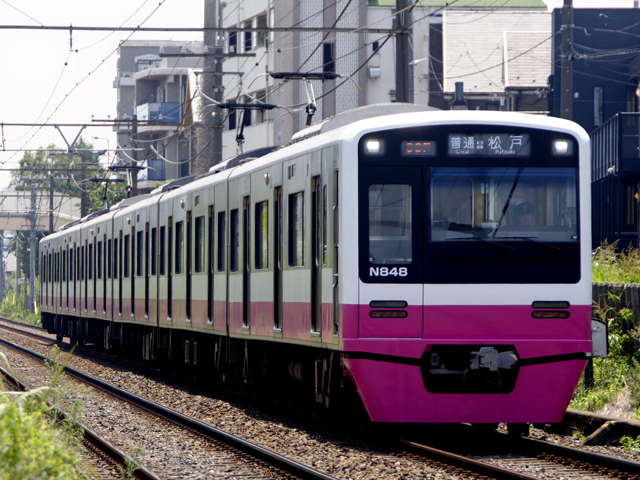 これからの新京成スタンダード。新塗装同士がすれ違う。 (検見川) |