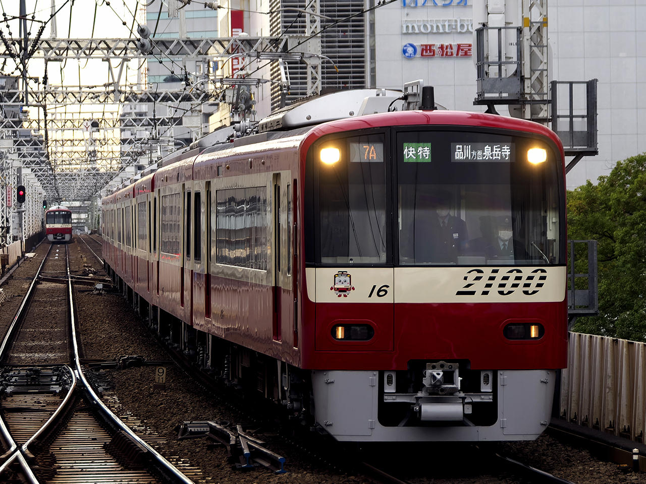| ★ 2141F2141。新幕。快特車新旧の並びとなった。 (京急川崎) ★ 2141。[特急|品川]@品川。こちら |