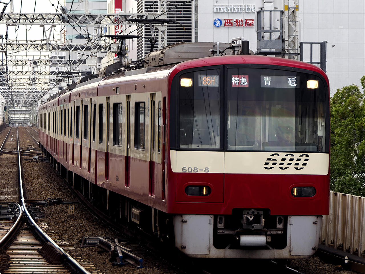 | 4M4Tシングルアームパンタという独自仕様の608F608-1。[A快特]運用では現在は600形は日中には滅多に見られない。A快特では120km/hで運転する。 (品川) |